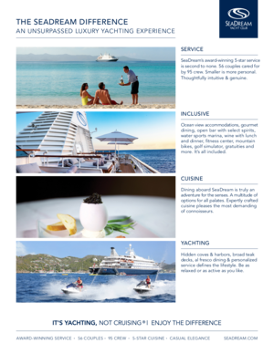 SeaDream is a small family owned company where each employee and guest is known by name. Once you’ve sailed with us, you too will become part of our family. The crew onboard each yacht welcomes you back as if you are returning home. We thank you for sailing with us and look forward to seeing you back aboard soon. Once you have sailed, (at a regular/public fare) you are automatically a Club Member and enrolled in the Club.