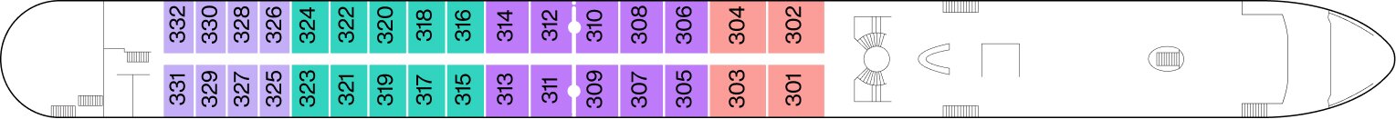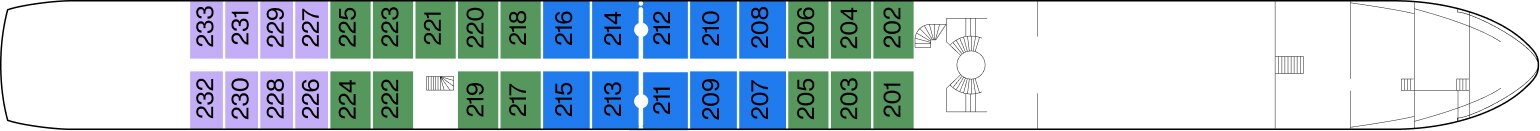 This versatile space hosts a bar, dance floor, plenty of comfortable couches and big windows on three sides and is used for everything from the morning port talks, daytime reading and chatting to scenic cruising, afternoon tea and evening entertainment.