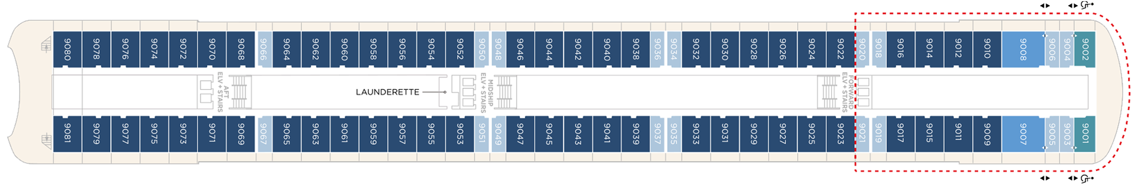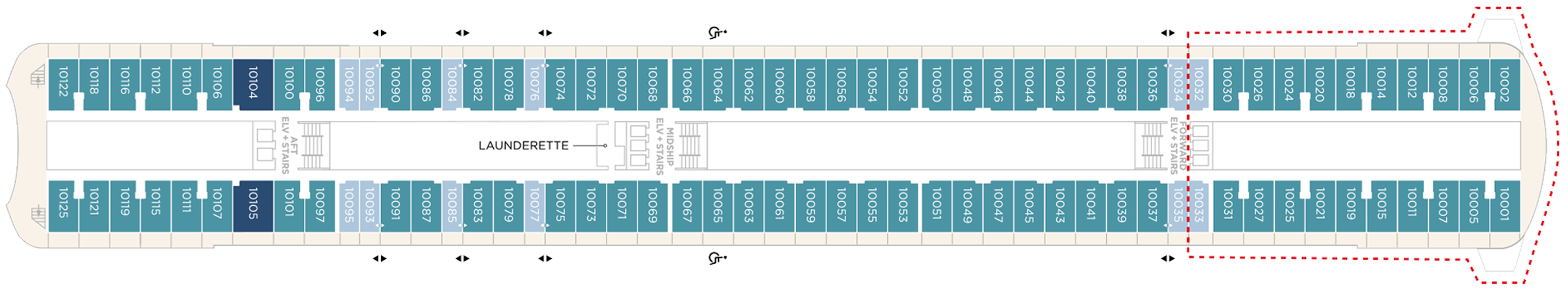 - Dry cleaning for five pieces plus one bag of free laundry every 10 cruise days, 2nd day service