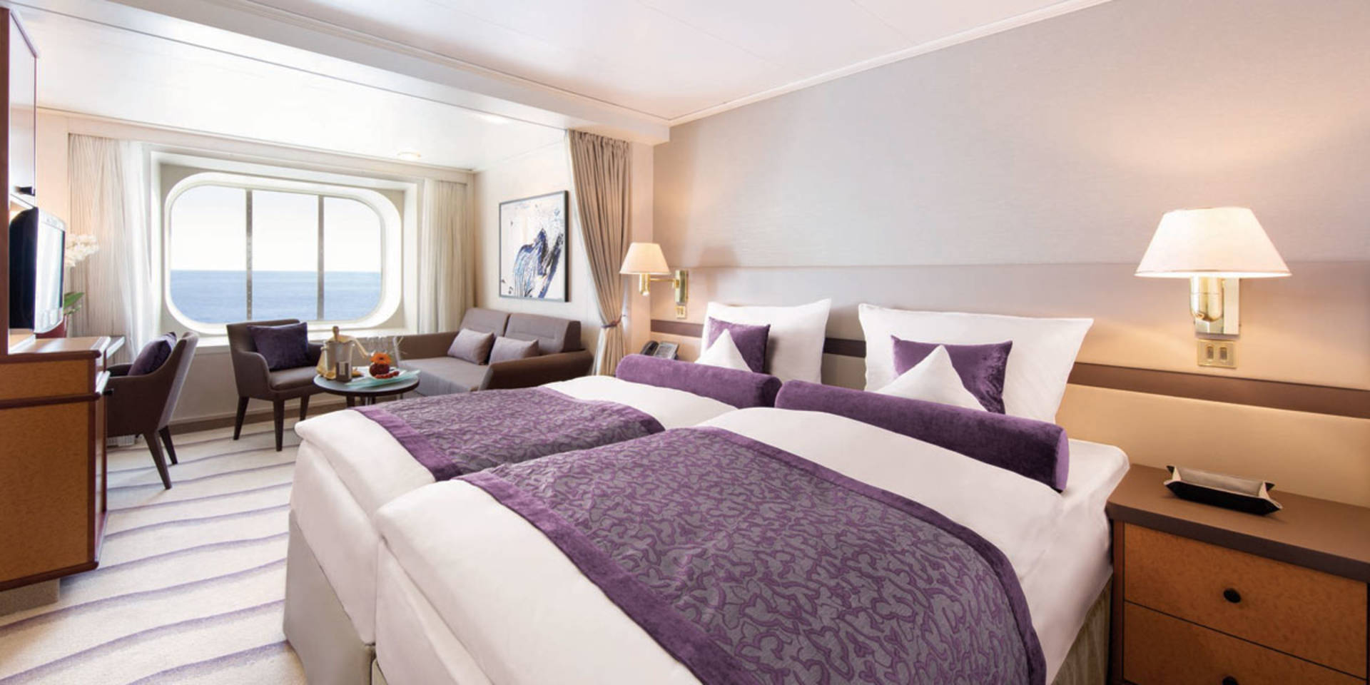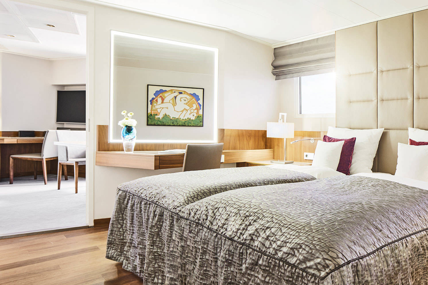 With their subtle colours, harmonious design and visually divided living and sleeping areas, the Veranda Suites fulfil your requirements for a cosy, private retreat. Additional connecting doors in some suites provide the option of making your family cruise even more comfortable.