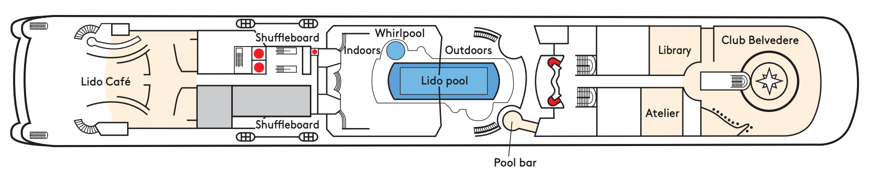 Sylt's famous bar is also very popular on the EUROPA. As the sun slowly sinks into the sea, a lively atmosphere spreads here until late into the night. Let our sommeliers inspire you and discover the largest selection of champagne at sea. Live music also awaits you on selected evenings.