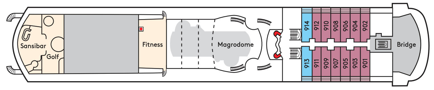 - 85 m² (915 ft²) Penthouse Grand Suite with a spacious veranda above the bridge