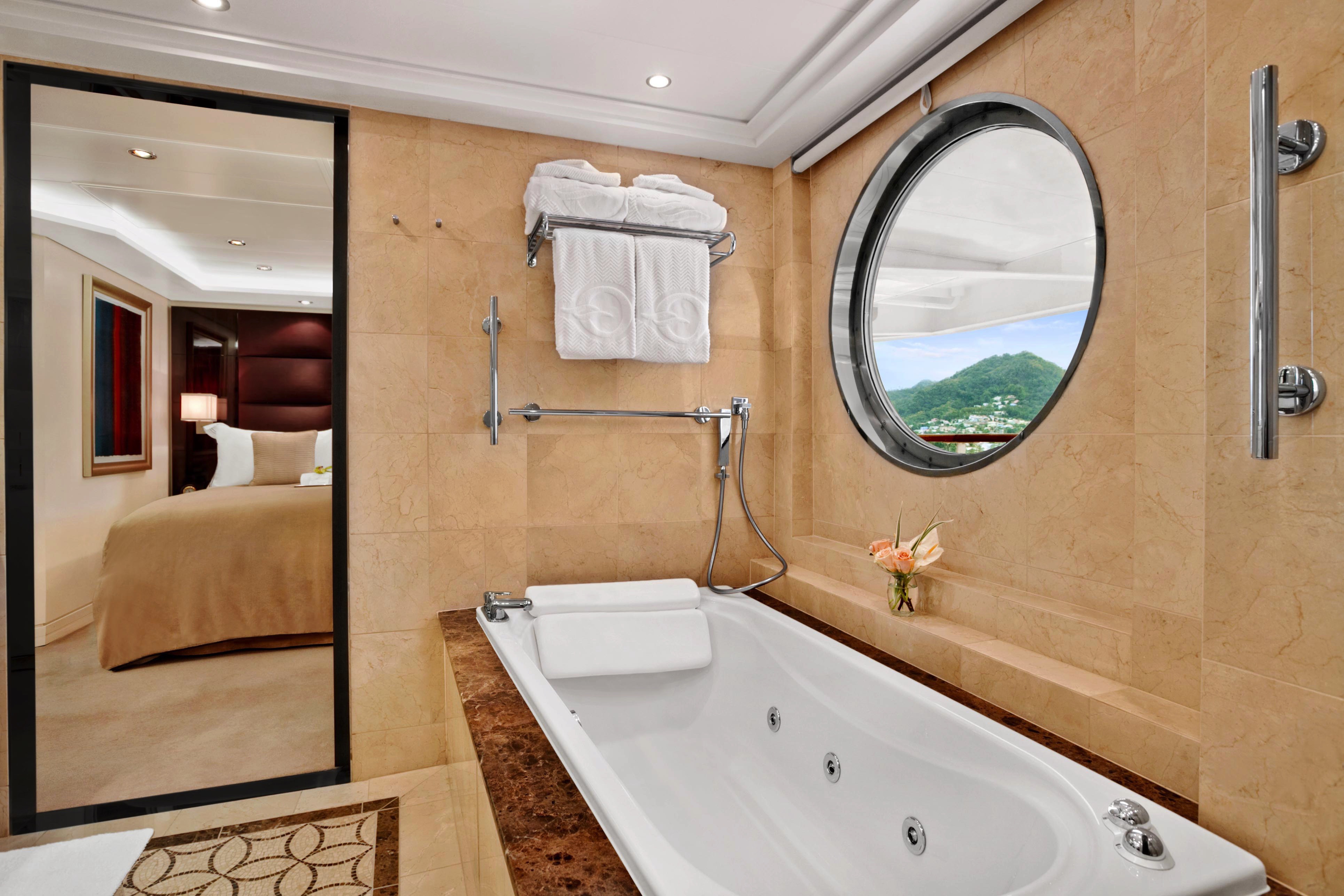 Featuring a luxurious residential design and stylish furnishings, each of the twelve Oceania Suites offers more than 1,000 square feet of luxury. These stylish suites feature a living room, dining room, fully equipped media room, large walk-in closet, king-size bed, indoor whirlpool spa, expansive private veranda and a second bathroom for guests. Also included is access to the private Executive Lounge with magazines, daily newspapers, beverages and snacks.