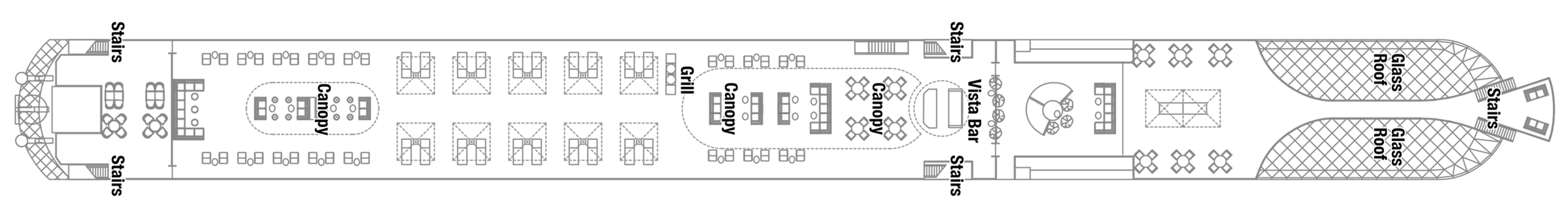 Home to our bar and barbecue, the Vista Deck is another standout feature on the Riverside Debussy. Picture this: freshly grilled scampi for lunch at our Uniquely Riverside barbecue, a crisp glass of regional Riesling in hand, and the UNESCO-protected, romantic landscapes between Bingen and Bacharach drifting by. Or perhaps you’re toasting the sunset with champagne as the striking silhouettes of the North Rhine’s industrial heritage come into view. Life doesn’t get much better than this.