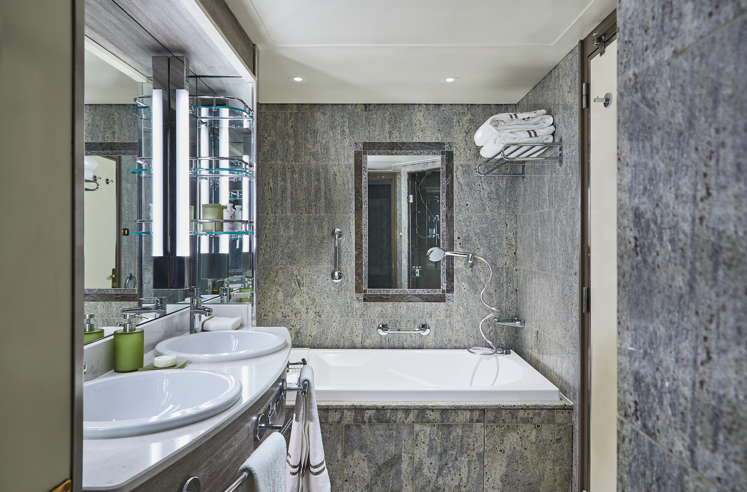 The name Owner’s Suite says it all. A stylish apartment. Prestigious and classic. For those who seek the superlative level of space, comfort, and service on board. Available in a one- or two-bedroom configuration (as illustrated) by adjoining with a Vista Suite.