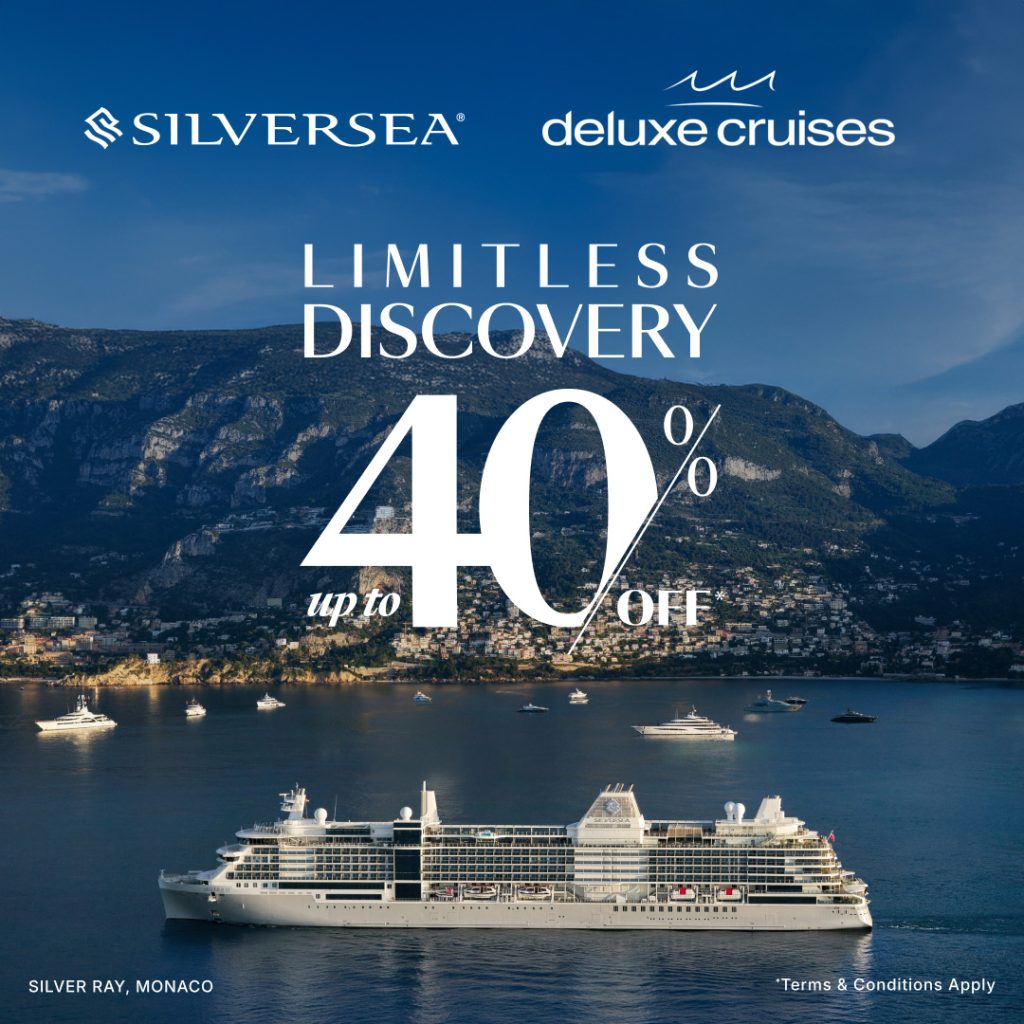 TERMS & CONDITIONS: *Limitless Discovery Offer applies to new, individual All-Inclusive Plus and All-Inclusive fare double occupancy bookings made between December 3, 2025 and February 28, 2026 on select voyages, excluding full World Cruises, full Grand Voyages and special combination voyages, and provides up to 40% off in the following suite categories: Vista, Panorama, and Veranda Suites (Classic, Superior, Deluxe, Premium) and up to 20% off in the following suite categories: Medallion (Standard, Premium), Junior Grand, Silver, Signature, Master, Royal, Grand, Owner, and Otium Suites. Percentage savings varies by departure date. Offer is combinable with Event Certificates, National Account Amenities, Referral Savings, Onboard Savings, Combination Savings (back-to-back), Kids Savings, Venetian Society Savings, and promotional groups. Offer not combinable with Last Minute fares. Cancel and re-books do not qualify. Offer is capacity controlled, subject to availability and can be removed at any time without prior notice. Single supplements apply and vary by voyage. Other restrictions may apply. For full offer terms and conditions, please visit www.silversea.com/best-luxury-cruise-deals/limitless-discovery. Ships’ registry: Bahamas and Ecuador.