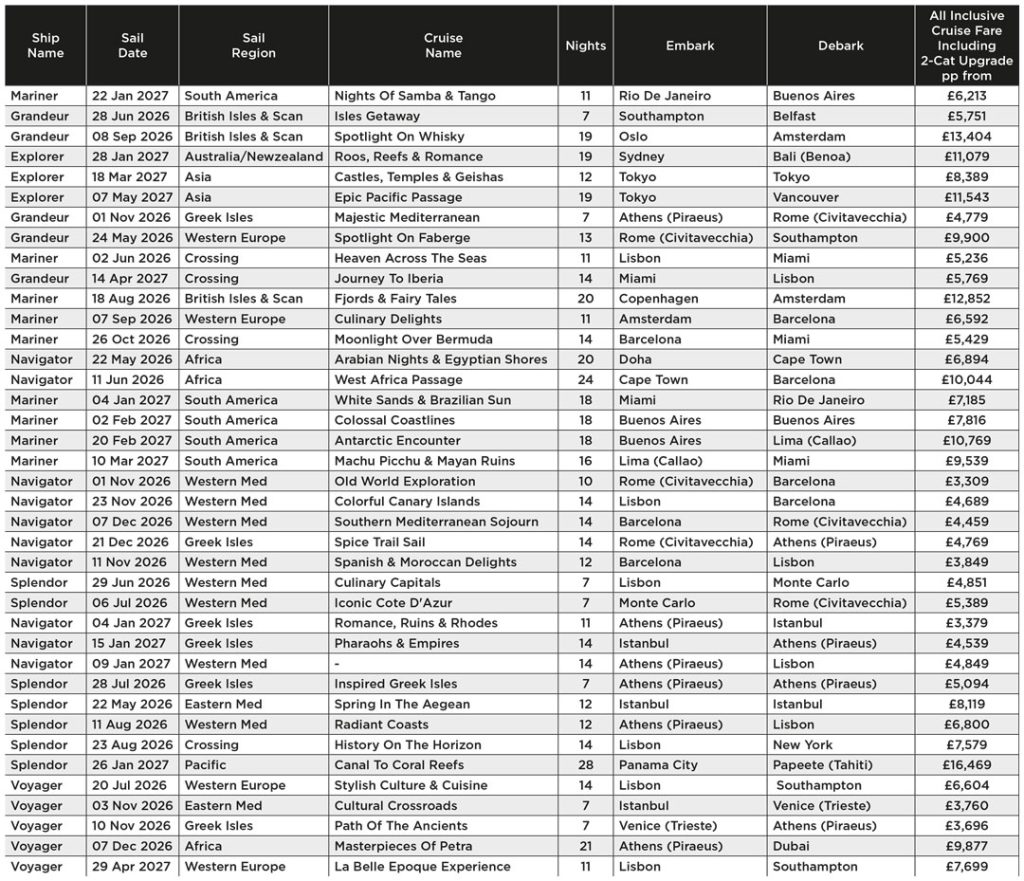 These handpicked sailings from the UPGRADE YOUR HORIZON selection