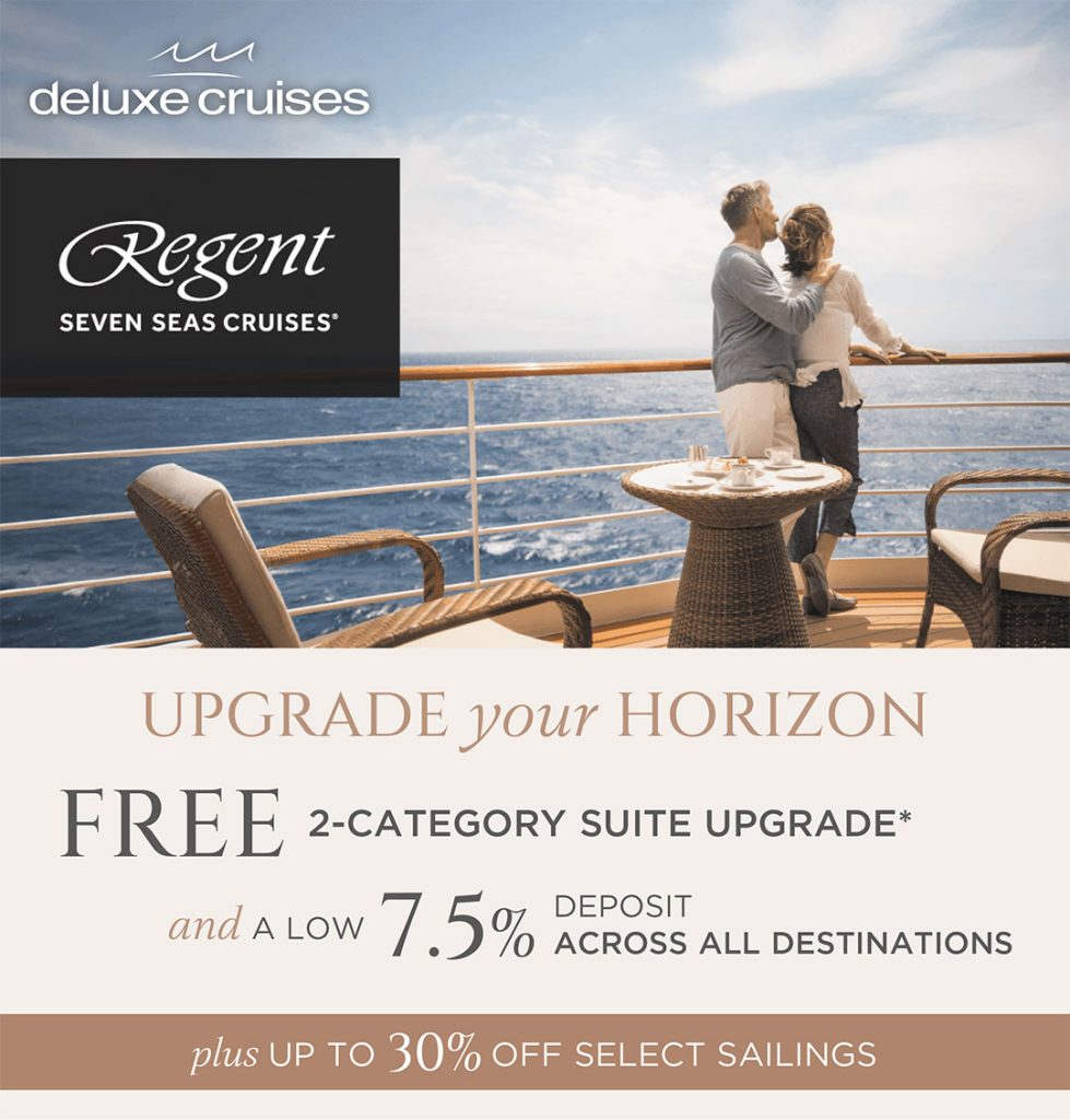 FREE 2-Category Suite Upgrade PLUS – Up to 30% off select 2026 sailings with a low 7.5% deposit