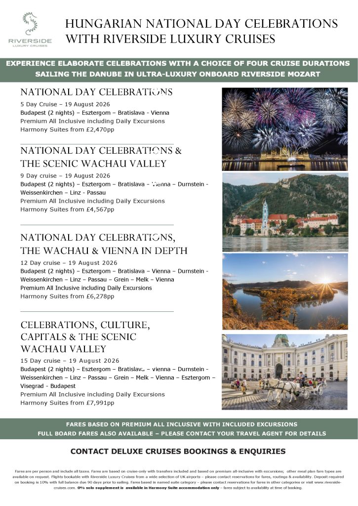 Experience the incredible Hungarian National Day celebrations with a 2-night stay in Budapest on Riverside Luxury Cruises Danube cruises visiting the Hungarian Capital.