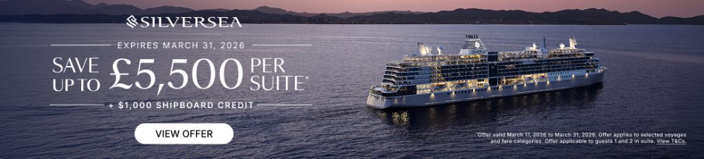• BONUS: $1,000 Shipboard Credit per suite: Elevate your experience with fine dining, spa treatments, or shore excursions. (Available on 150+ select voyages when you book by 31 March 2026).
