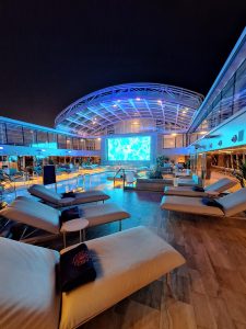 With five pools to choose from, we had to try them all! My favourite was the Astern infinity pool on deck 5. The conservatory pool with a retractable roof and large screen is great when there is bad weather while the area doubles-up as a cinema in the evening.