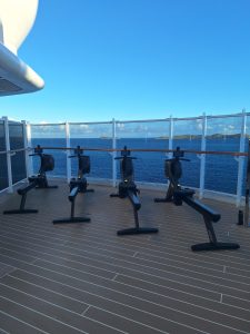 With all the wonderful food we were eating, we decided to burn some calories by trying the sports conditioning class situated at the outside exercise area with sports court, spinning bikes and rowers. With only the two of us attending, we felt like we had a personal training session. The early morning stretch and yoga classes were also delightful in the studio: watching the sunrise and ocean through the fabulous floor to ceiling windows.
