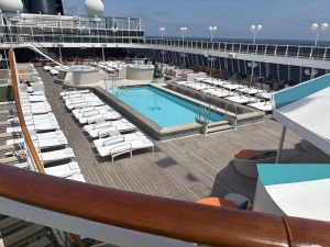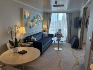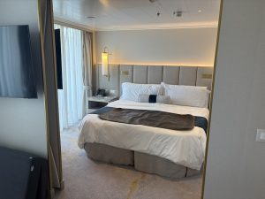 My suite was a Sapphire Veranda which was amazing. It had a separate lounge and bedroom, both with doors to access the large balcony. My bathroom benefitted from an amazing ‘rain’ shower. Fantastic.