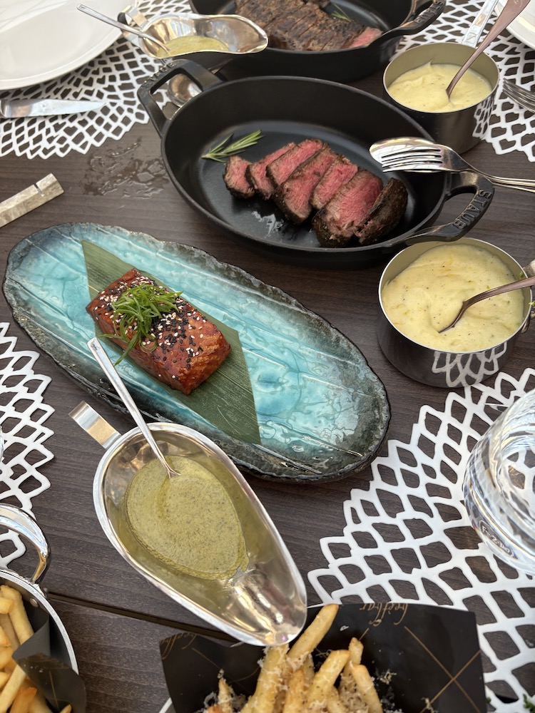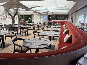 The restaurants on board ranged from Waterside, the main dining room with its signature soup served in a bread bowl, to Umi Uma by Master Chef Nobuyuki Matsuhisa of Nobu fame with its superlative range of delicious sushi dishes. The gourmet steak restaurant Beefbar and the pool restaurant Trident Grill both offered dining under a full glass roof with parasols and greenery conveying a lovely outdoors feel complementing and enhancing the dining experience.