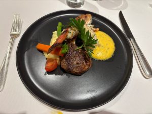 After settling into our beautiful stateroom, we made our way to dinner where SeaDream II’s expert chefs and sommeliers treated us to a grand dining experience. Dinner was a relaxed and relaxing affair where the crew made a grand spectacle of the main course with the waiters revealing every diner’s food at the same time. The food was spectacular, well presented, perfectly prepared and, naturally, extremely flavourful and tasty.
