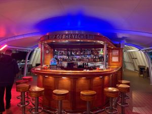 On our visit, we found most guests on the top deck at the “Top of the Yacht” bar. Offering fantastic views and a great atmosphere this was a favourite for all of us and the music and conversation made this a fabulous venue to sit and chat.