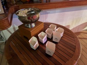 Upon arrival on board the Yacht in the late afternoon we were greeted with a warm welcome from the Scottish Captain (who has worked for SeaDream for 20 years) and crew who had laid out welcoming cocktails and hors d’oeuvres in the main saloon.