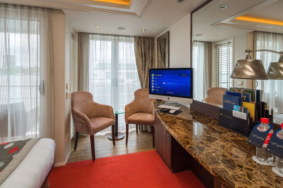 With fewer guests on board, we have space for luxurious amenities. Relax with a soothing massage or visit the hair salon after a day of exploring, stay in shape with a small group wellness activity led by a professionally trained Wellness Host, work out in the fitness room or watch breathtaking castles glide by while enjoying a cocktail up on the Sun Deck. You can also take a dip in our sun-deck pool with a swim-up bar. On any of our ships, you can also recharge from the comfort of your stateroom by watching a Hollywood blockbuster or a variety of other English-language programming on your personal Entertainment-On-Demand system.