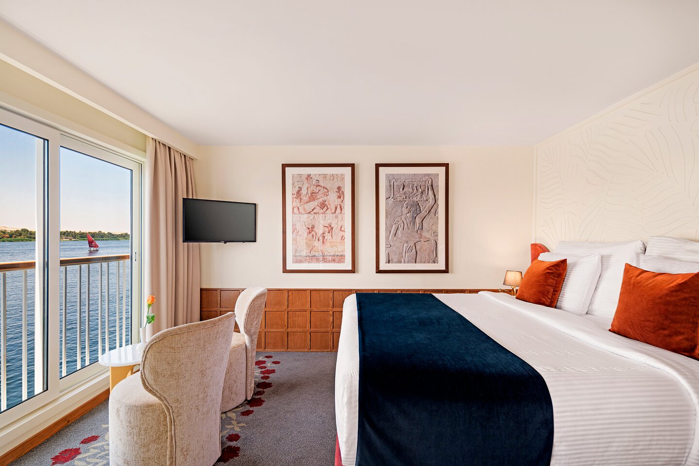 The Jewel of the Nile, AmaNubia carries just 76 guests in 38 staterooms, of which 15 are spacious suites. With Egyptian-inspired décor and modern comforts, the ship offers a refined setting to explore Egypt’s timeless treasures. At the ship’s main restaurants, guests can enjoy regionally inspired dining with Middle Eastern flavors. The ship also hosts an onboard Egyptologist to help guests learn more about the areas they pass. A spa, fitness center, and attentive service complete the experience, making AmaNubia a graceful way to discover the Nile.