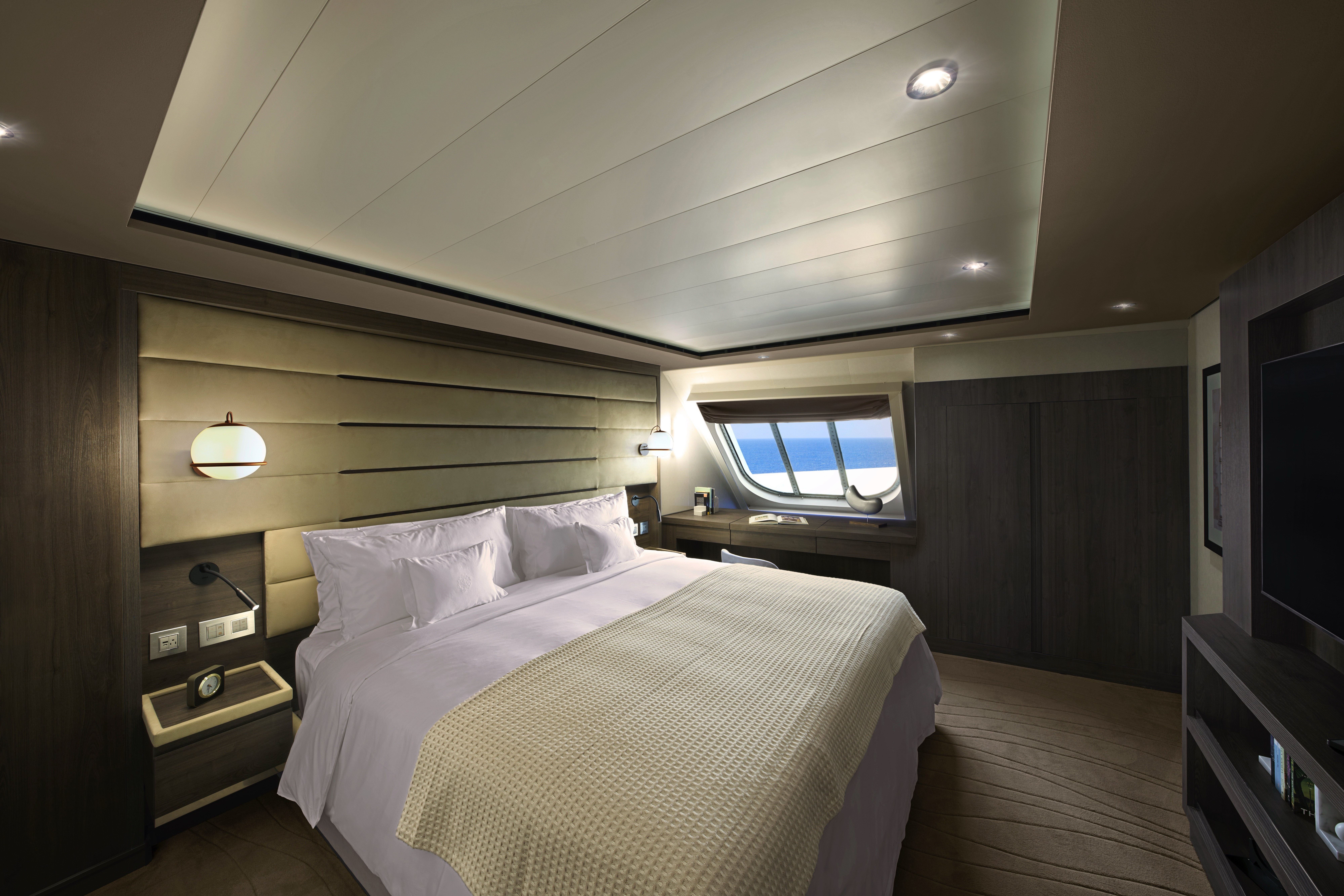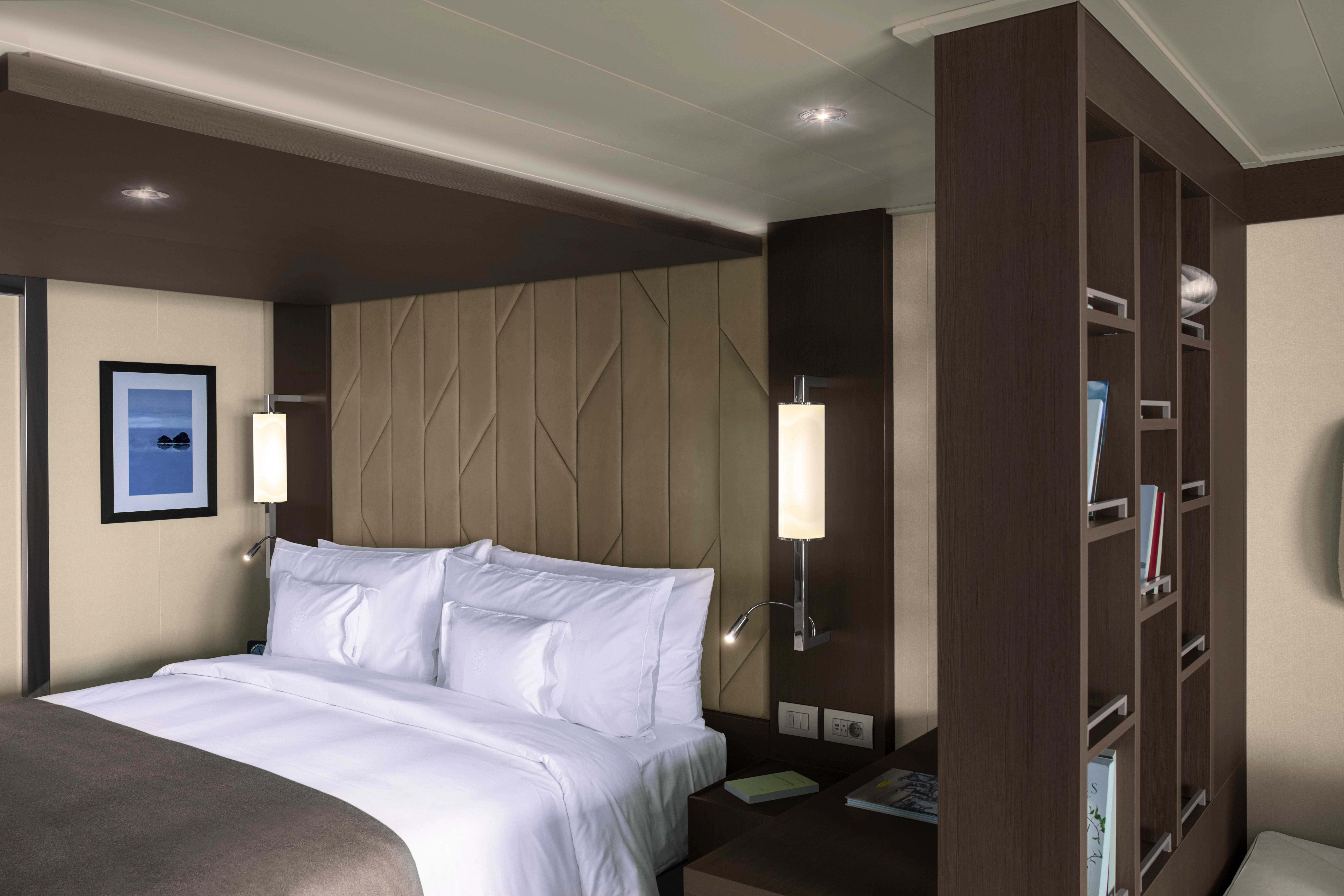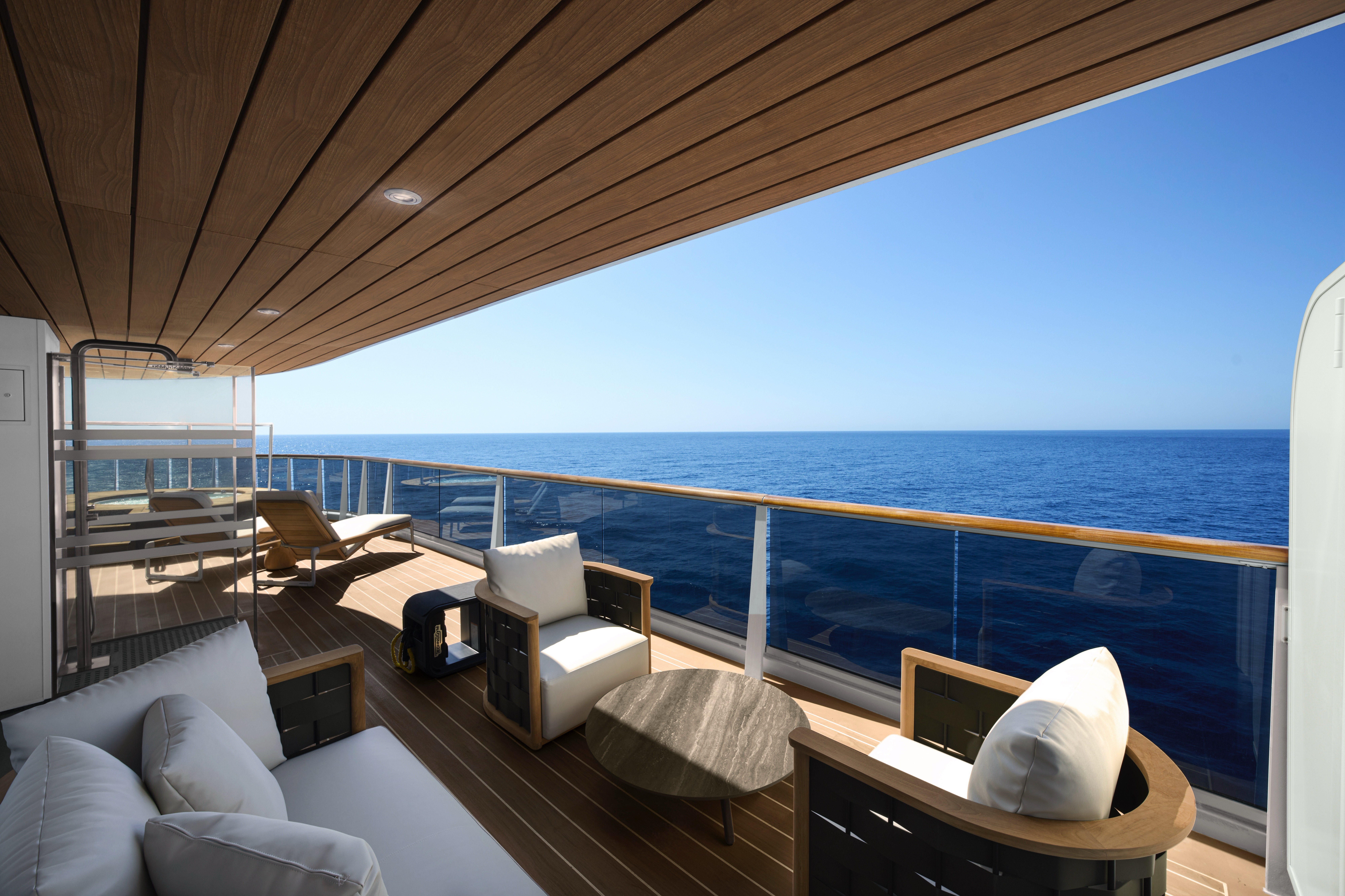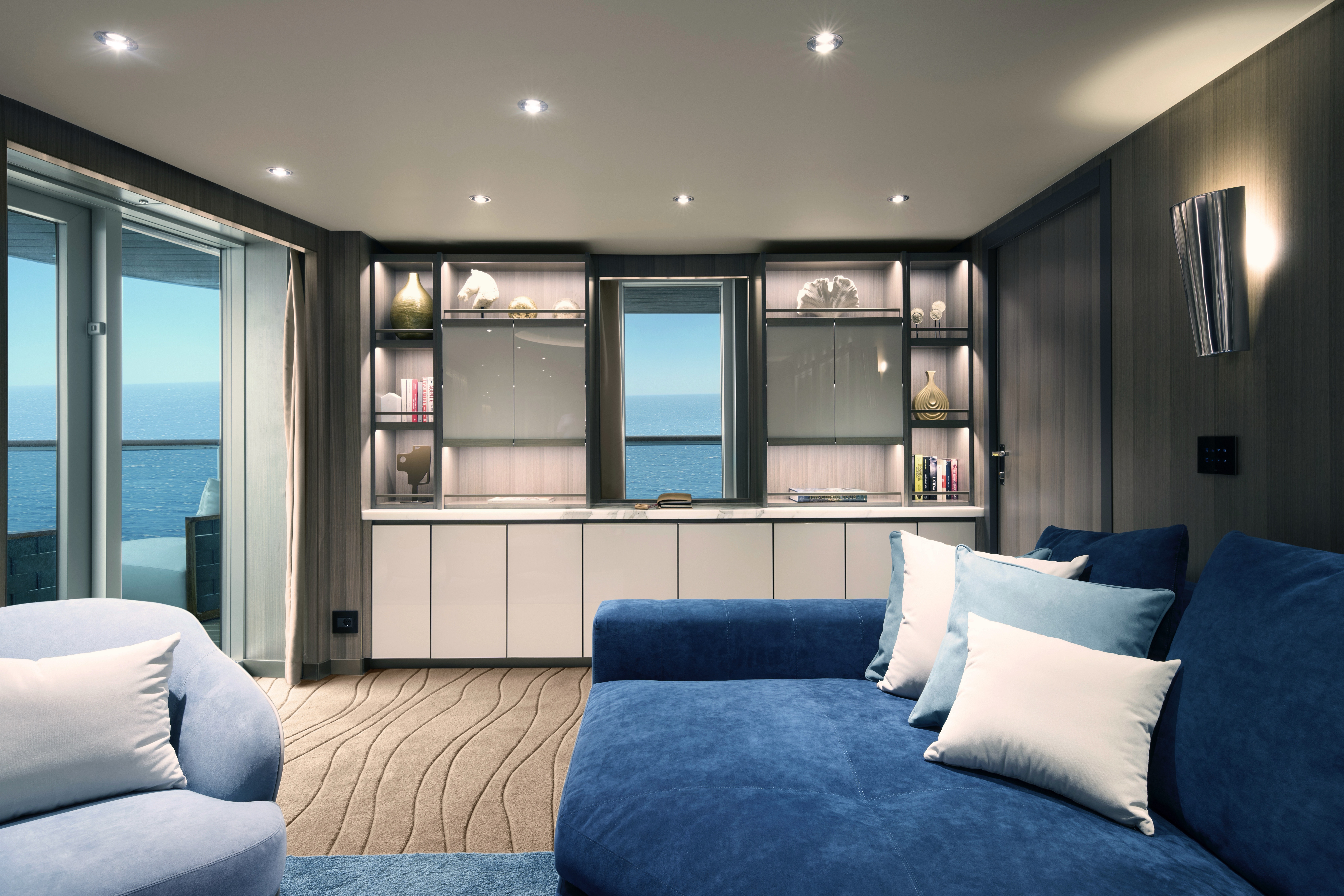 At the heart of the experience are our spacious Homes at Sea. Each of our Ocean Suites, Penthouses, and Residences is a truly serene retreat, featuring floor-to-ceiling windows bathing the space in light, opening onto generous private terraces, complete with daybeds and a dining area, seamlessly blending indoor and outdoor living. Inside, every detail has been considered, including a walk-in wardrobe with seated vanity area, luxurious bathrooms with custom toiletries, fine linens, and the effortless, impeccable service of our Perfect Hosts.