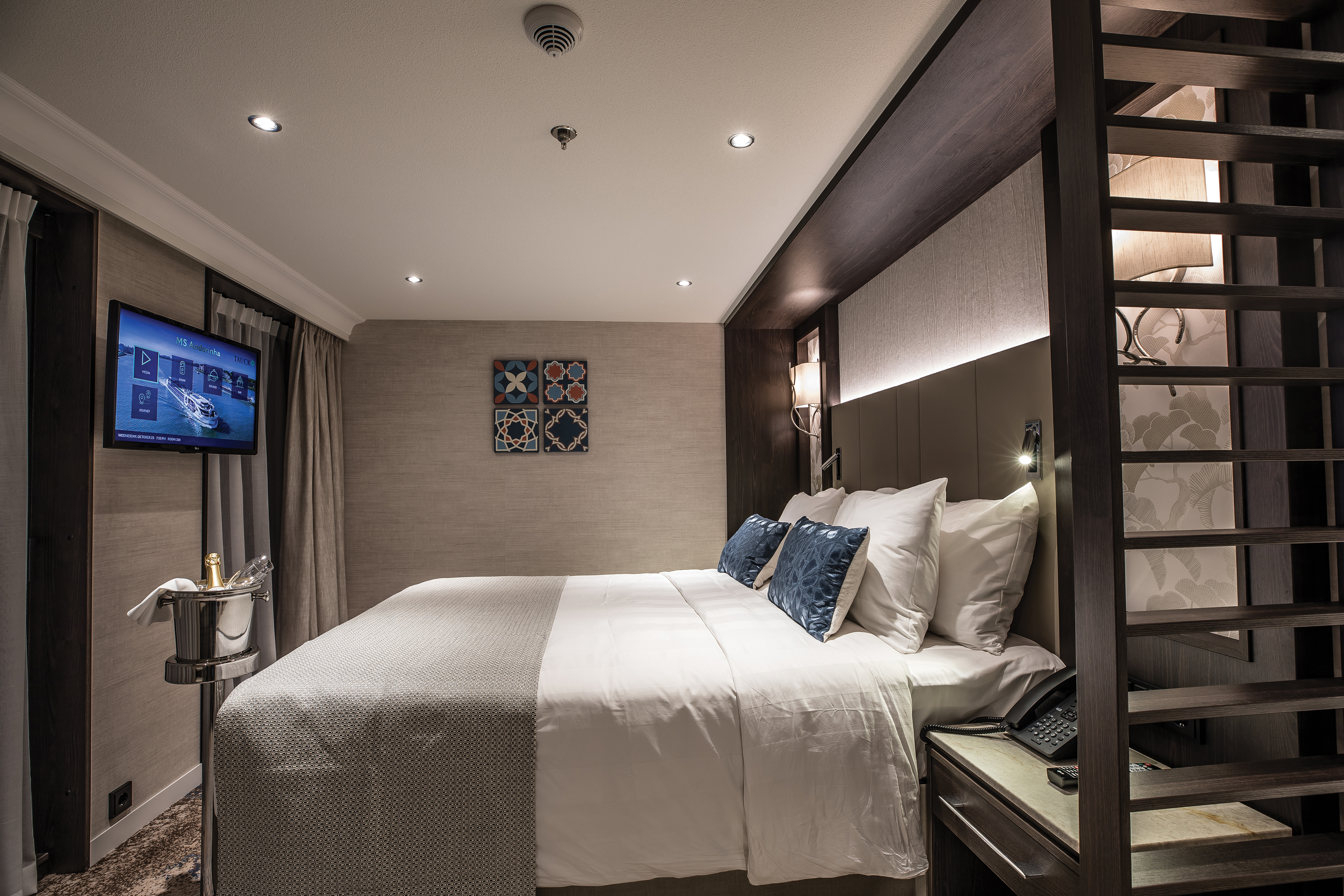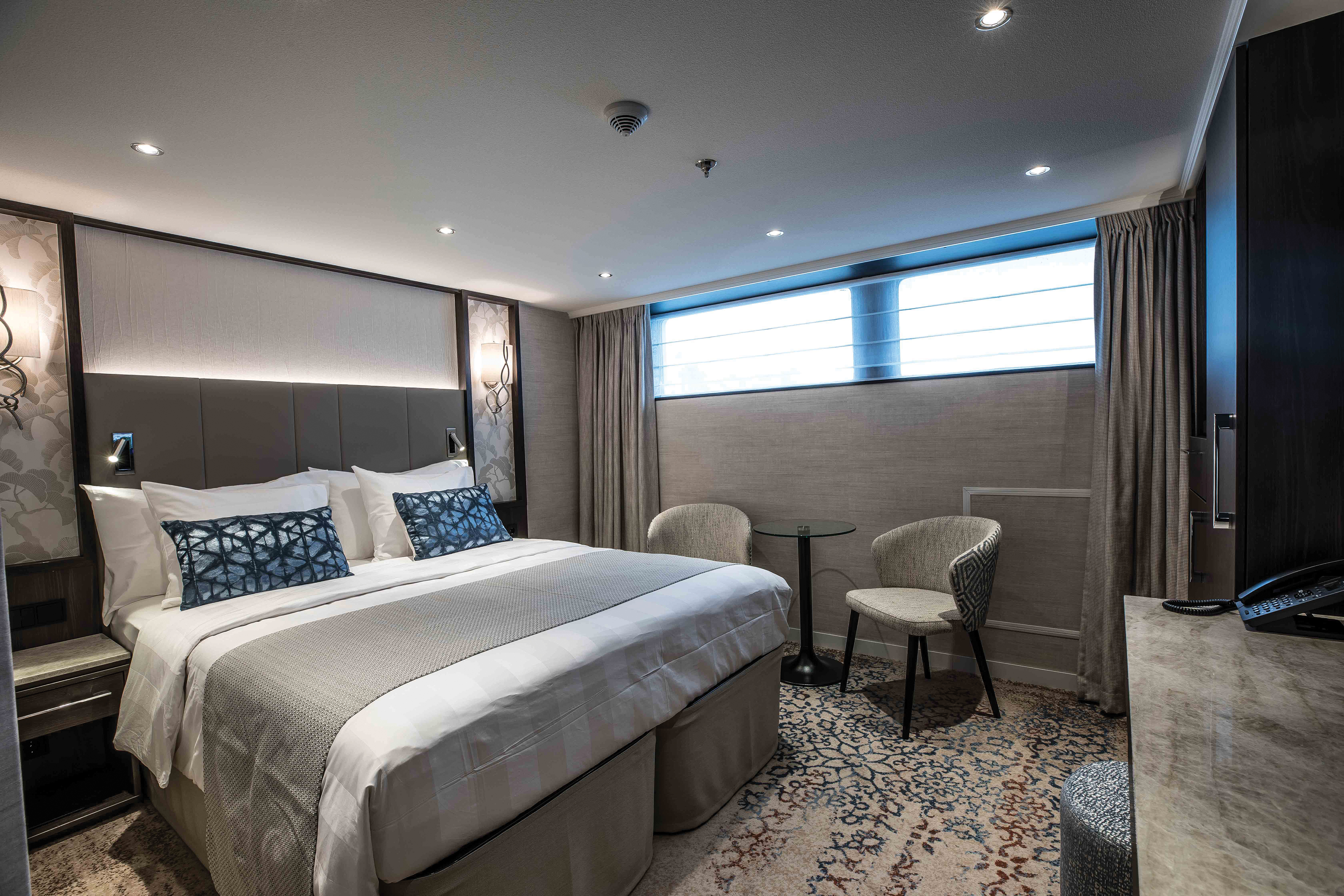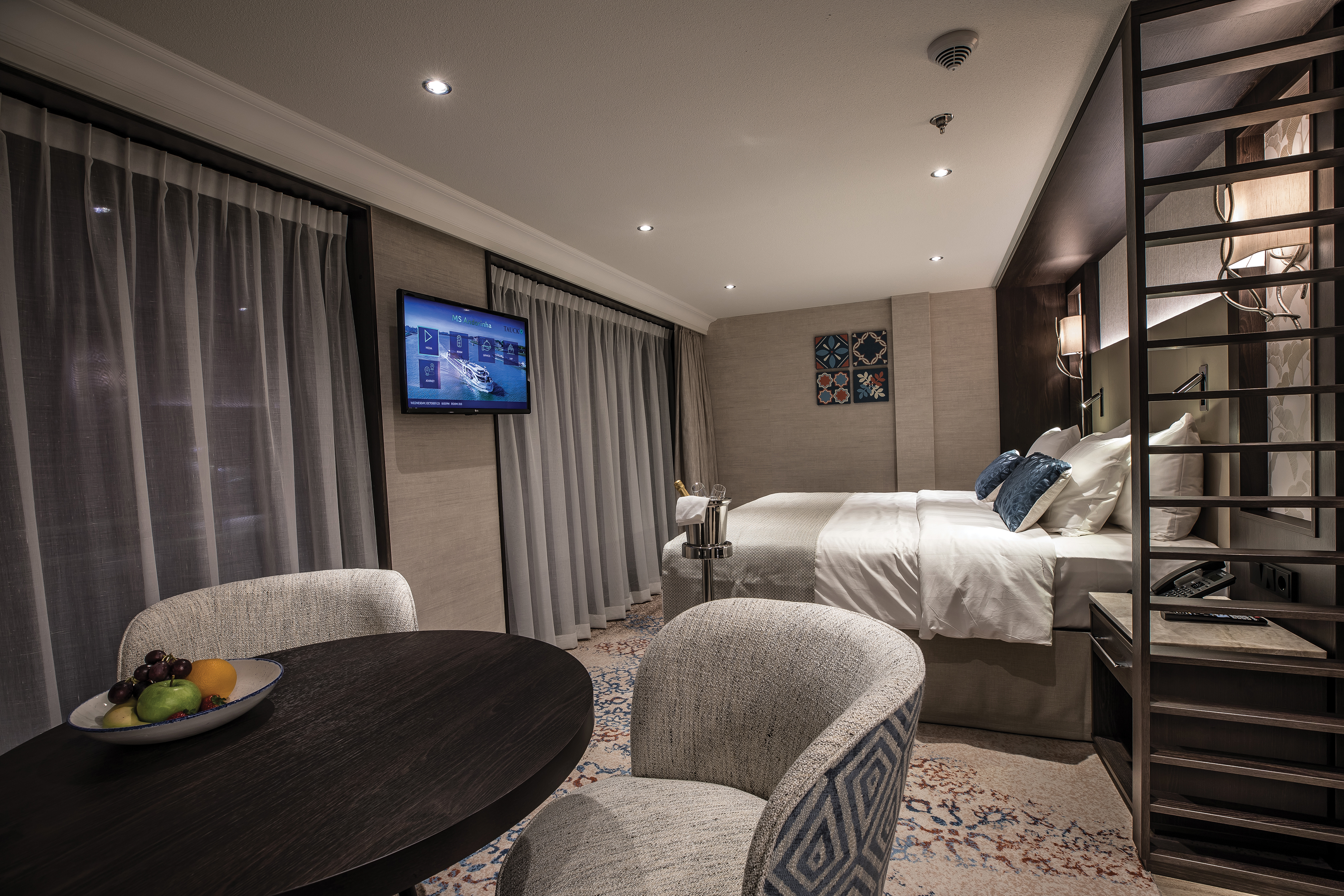 Custom-designed by our long-time partner Scylla to accommodate no more than 84 guests within an innovative deck plan featuring 12 300-sq. ft. Tauck Suites and 20 225-sq. ft. cabins, this brand-new 80-meter (263-foot) riverboat was specifically built for cruising amidst the historic quintas and picturesque villages along Portugal's golden Douro River.
