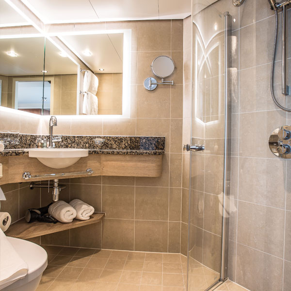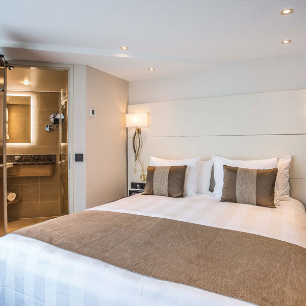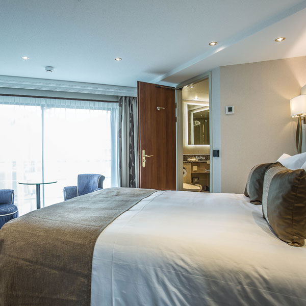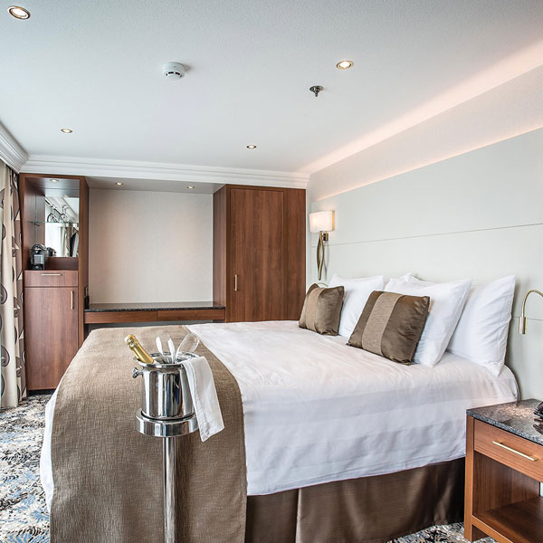 One of the 361-foot (110-meter) riverboats in Tauck's Destination Fleet, this newly redesigned riverboat debuts in 2017 with a new deck plan optimised for the utmost in spaciousness – with 70% of her cabins measuring 225 square feet or larger – and accommodating no more than 98 guests, while similar-sized riverboats average about 160. Guest amenities inside her 14 lush 300-square-foot Tauck Suites include brocade upholstery, roomy walk-in closets with built-in drawers, spacious bathrooms with separate showers, and two French balconies with floor-to-ceiling windows that open to idyllic riverscapes. She also sports twenty roomy 225-square-foot cabins, four 183-square-foot cabins and one 182 square-foot cabin, similarly furnished. Eight 150-square-foot cabins are cozy and comfortable, and are similar in décor and style to our larger suites. 85% have floor-to-ceiling windows with real French balconies that open on to a balcony in the fresh air; all have in-room movies, minibar, adjustable heating and cooling, private bathroom and shower with pampering toiletries. In addition to our main dining room, The Compass Rose, the ship also features Arthur's, a second dining venue offering casual fare.