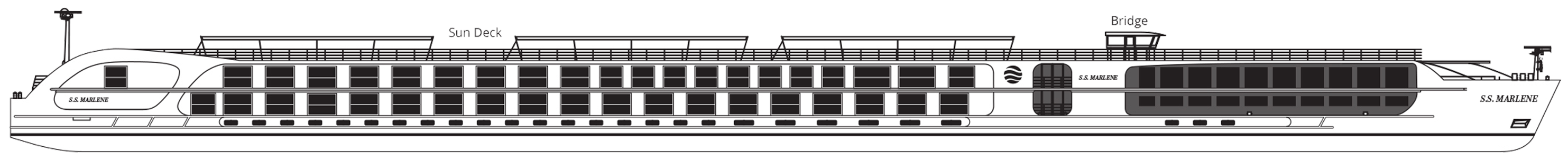 Sailing through the waterways of Central Europe, the S.S. Marlene is an homage to German-born actress and singer Marlene Dietrich. Launching in 2027, the ship is sure to impress travelers with Dietrich’s distinctive flair, drawing inspiration from her time as an old Hollywood film star and, later, a cabaret artist.