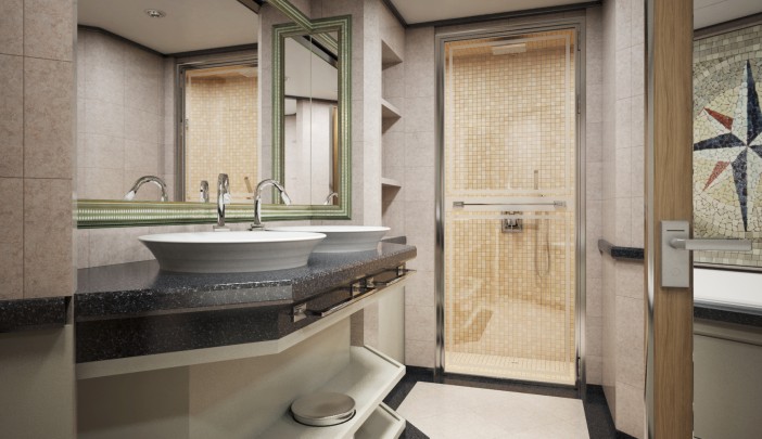 Beautiful elegant furnishings are the perfect choice to soothe and relax as you sail from one destination to the next. Large windows flood the room with light, making for luxurious ocean views whether it’s morning, noon, or night! Panorama Suites are the perfect accompaniment to a Silver Suite for larger parties, or just perfect on their own. With all the modern conveniences that you would expect from an ultra-luxury cruise line, Panorama Suites offer comfort, space, and style!