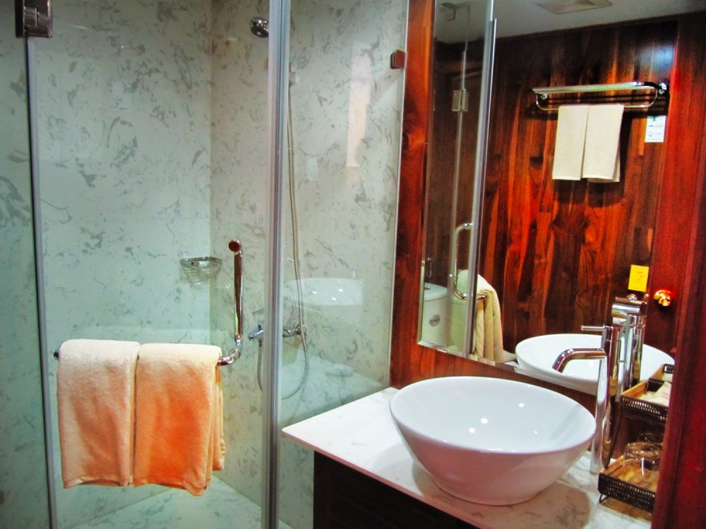 Located on the Upper Deck these Staterooms have floor-to-ceiling sliding French doors, hotel-style beds with optional twin-bed configuration, a private bathroom with shower and products as well as a safe and a hair dryer. Air conditioning is provided throughout, as well bottled water replenished daily. Staterooms provide guests with 220V powerpoints.